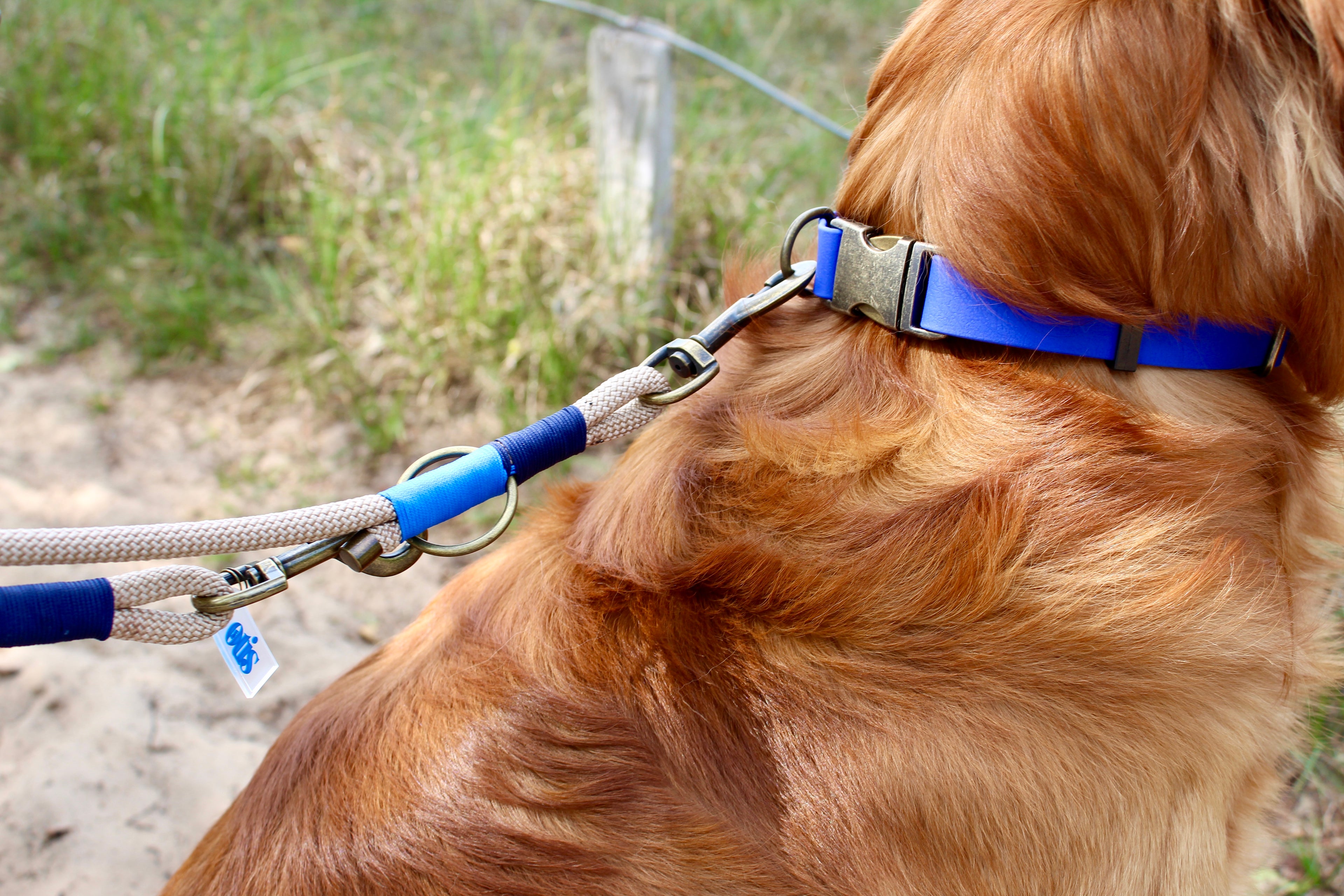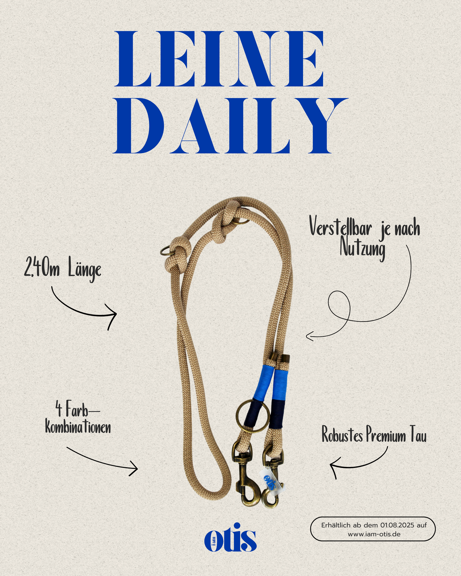 Unsere Verstellbare Leine Daily ist unser Hero Produkt. Handgefertigt aus robustem Premium-Tau, veredelt mit farbenfroher Takelung und Hardware aus Altmessing.