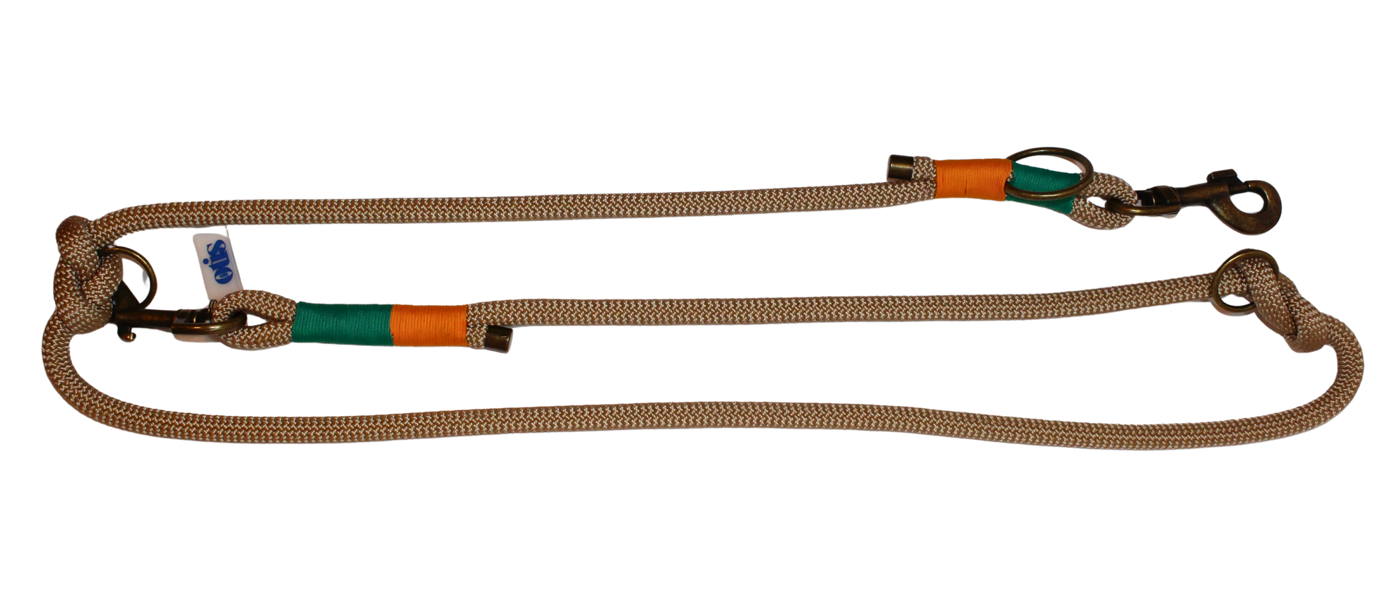 Unsere Verstellbare Leine Daily ist unser Hero Produkt. Handgefertigt aus robustem Premium-Tau, veredelt mit farbenfroher Takelung und Hardware aus Alt-Messing.